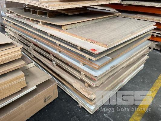 53 x SHEEETS OF ASSORTED MDF, FDM & CHIP BOARD SOME LAMINATED UP TO 3600 x 1800mm
