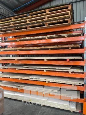 CONTENTS OF ONE RACK (NOT TOP SHELF) 36 x ASSORTED CHIP BOARD SECTIONS SOME LAMINATED VARIOUS SIZES