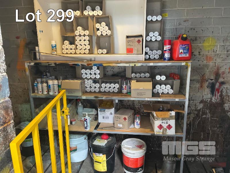 CONTENTS OF PAINTS STORAGE: SPRAY PAINTS ROLLERS VARIOUS SOLVENTS LARGE QUANTITY