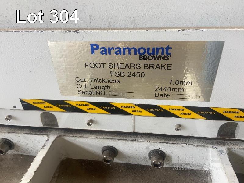 GUILLOTINE, PARAMOUNT MOD: FSB2450 FOOT OPERATED 2440 x 1mm CAPACITY WITH BACK STOP TABLE 2700 x 1400mm