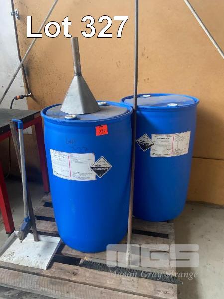 2 x 200 LITRE BLUE PLASTIC BARRELS, EMPTY NB: CORROSIVE CONTENTS