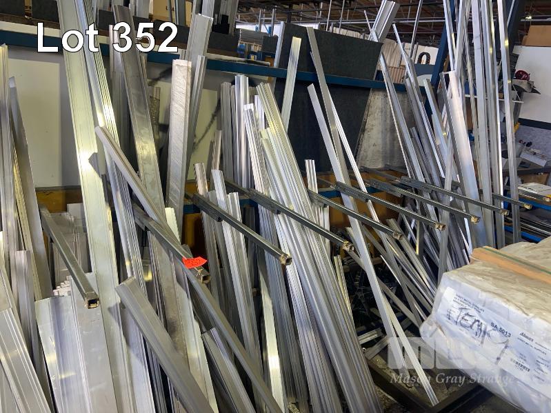 STOCK RACK, 7.7 (L) x 2.5 (H) x 1.1m (D) & CONTENTS OFFCUT ALUMINIUM EXTRUSION, WORK BENCH & STAND WITH CONTENTS