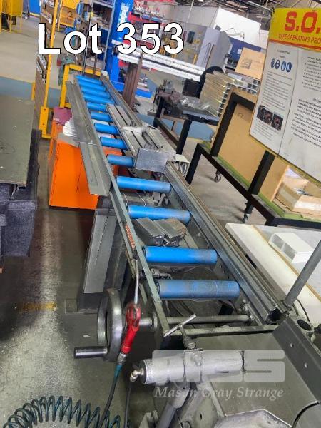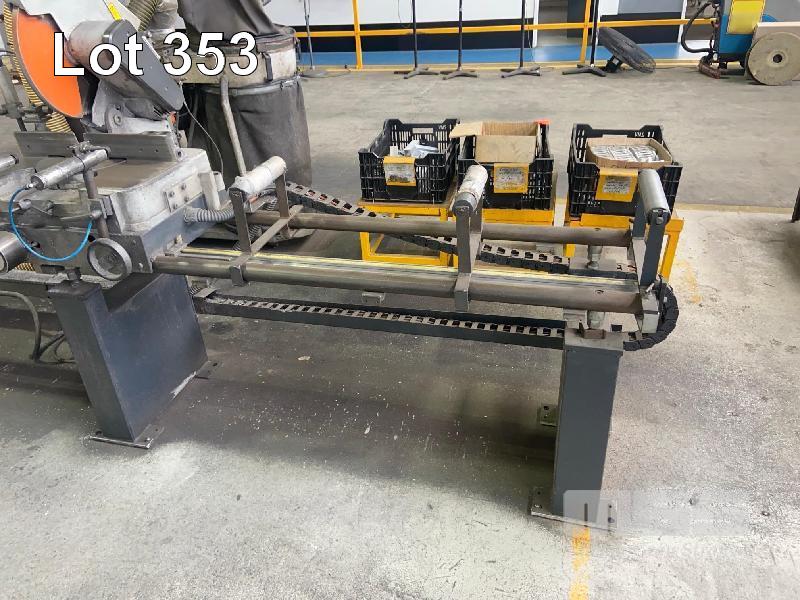 TWIN HEAD ELUMATEC SAW SET WITH E355/P CONTROL TWIN PNEUMATIC CLAMPS SWIVEL HEAD 1 x FIXED & 1 x SLIDING SMALL WORK STAND, ORANGE TOOL CUPBOARD & TWN BAG DUST EXTRACTOR