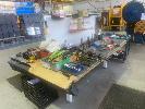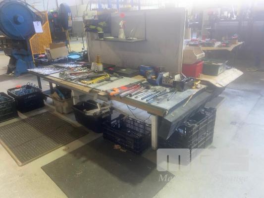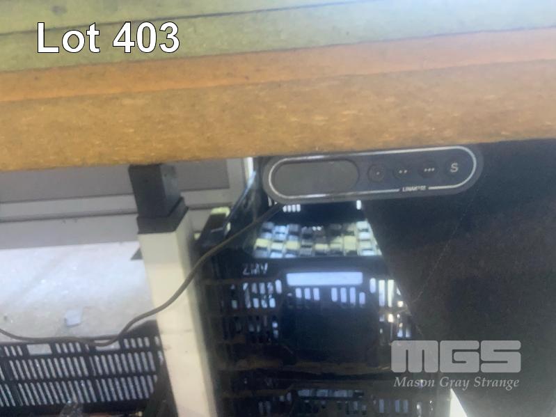 ELECTRIC RISE & FALL WORK TABLE, 2400 x 750mm, DOUBLE SIDED & SMALL STOCK TABLE, MOBILE