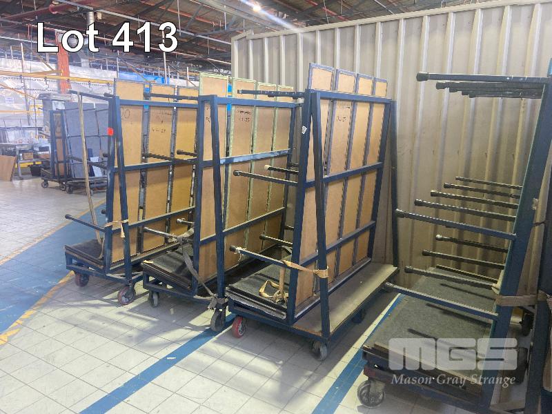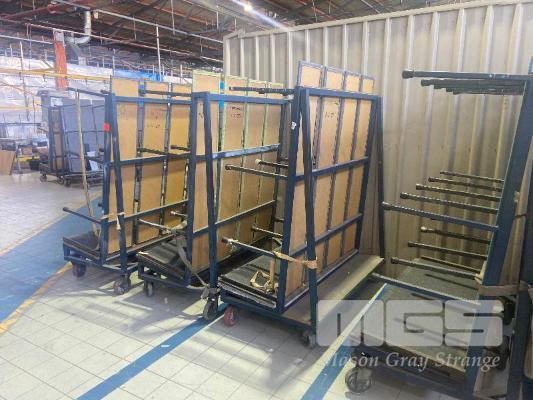 4 x VERTICAL STOCK TROLLEYS, SINGLE SIDED, 6 WHEEL 2 @ 2000mm (L) 2 @ 1500mm (L)