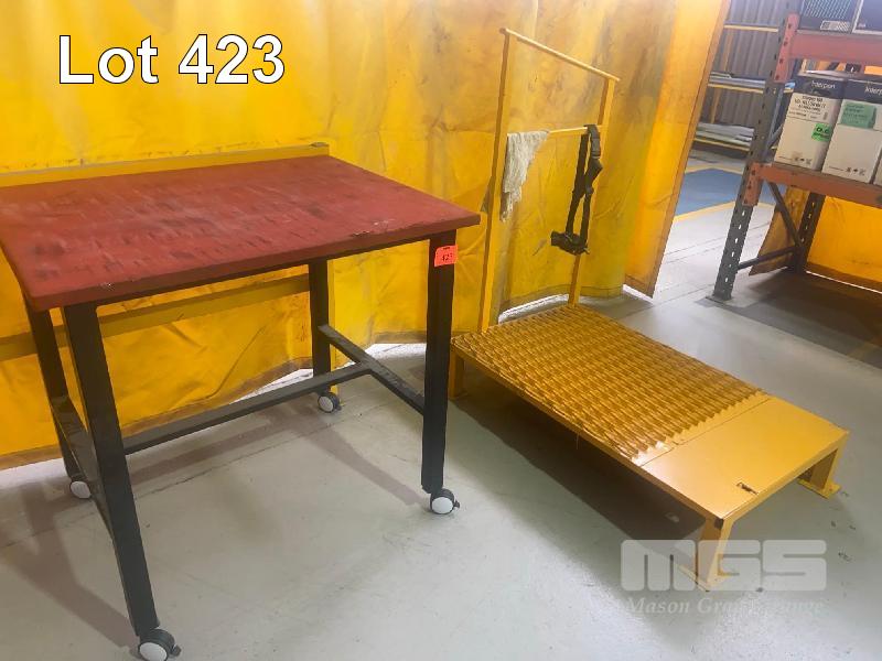 WORK BENCH, 1000 x 800 x 950mm STEEL FRAME, CHIPBOARD TOP, PADDED MOBILE, LOCK CASTORS