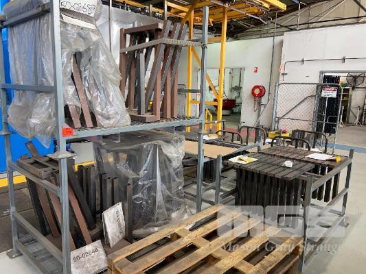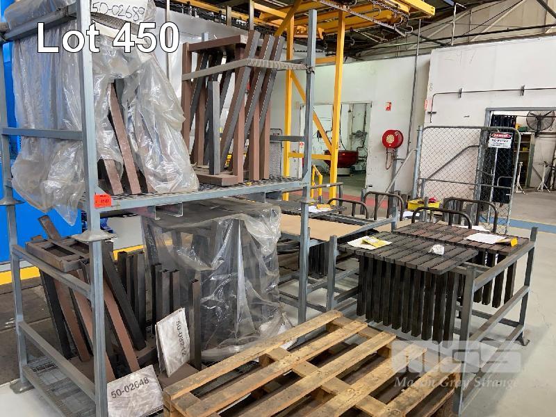 5 x GALV STOCK RACKS, STACKABLE, 2 x SMALL STEEL STOCK RACKS & STEEL STOCKS