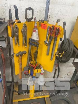 TOOL STAND & TOOLS, MOBILE, GRIPS, RULERS, HAMMERS, FILES, HEX KEYS, SET SQUARE & TAPE