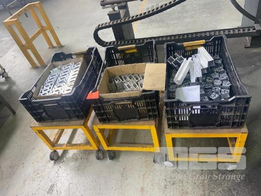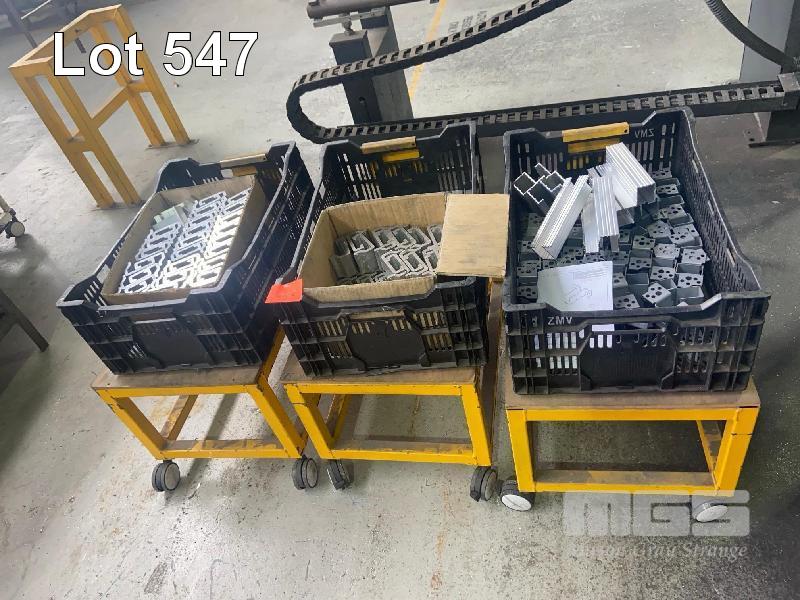 3 x LOWLINE PRODUCT TROLLEYS, WITH ALLOY OFFCUT & BASKETS
