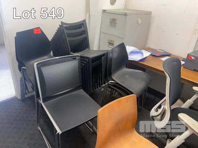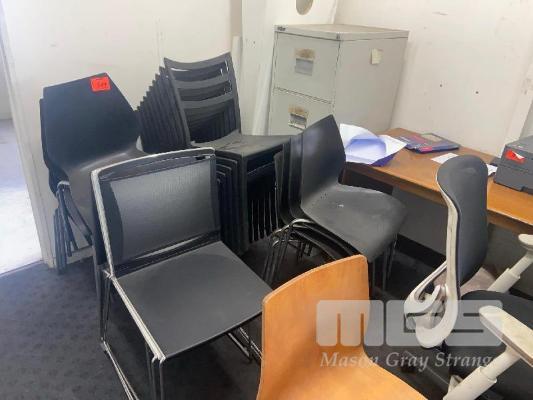 21 x STACKING CHAIRS, BLACK (2 x TYPES)