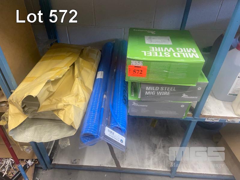 3 x COILS OF MAGMATE MIG WIRE 0.9mm. 2 x FLEX COIL AIR LINES? WITH WHITE PAINT? PVC SCREEN.