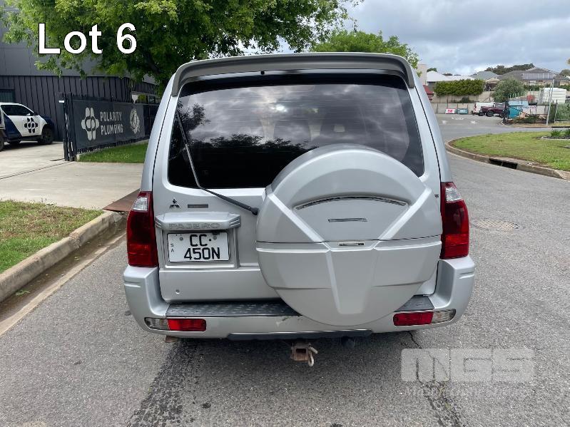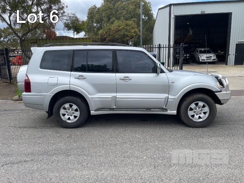 2003 MITSUBISHI PAJERO EXCEED NP WAGON 4X4 REG: CC450N (SA) VIN: JMFLYV75W3J001664 ODO: 281,255kms SHOWING 3.5L MPFI V6, 5 SPEED SPORTS AUTO, PETROL, SILVER DUCO, 5 DOORS, 7 SEAT, 4X4 ABS, AIR BAG, AIR CON, ALLOY WHEELS, BULL BAR, CENTRAL LOCKING, CRUISE CONTROL, FOG LAMPS, IMMOBILISER, POWER WINDOWS, ROOF RACKS, SIDE STEP, SPARE WHEEL, TRACTION CONTROL, REVERSE CAMERA, BAROMETER/ALTIMETER (WITH PAPERS, WITH 2 KEY/S, WITH OWNER'S MANUAL, WITH SERVICE BOOKS)