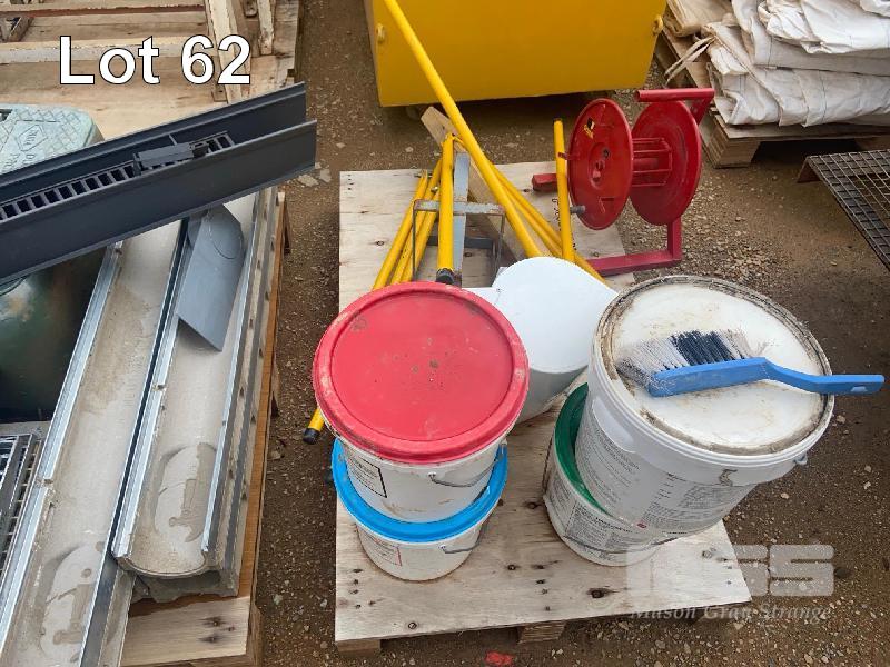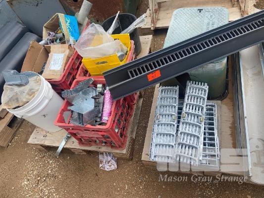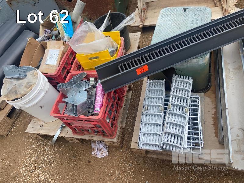 BUILDERS BRACKET, STORMWATER GRILLS, WORK STANDS, GYPROCK, HOSE REEL, CLAMPS, CAPS, ETC CONTENTS 3 x PALLETS