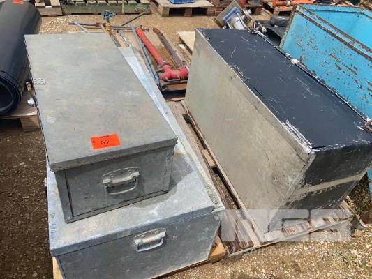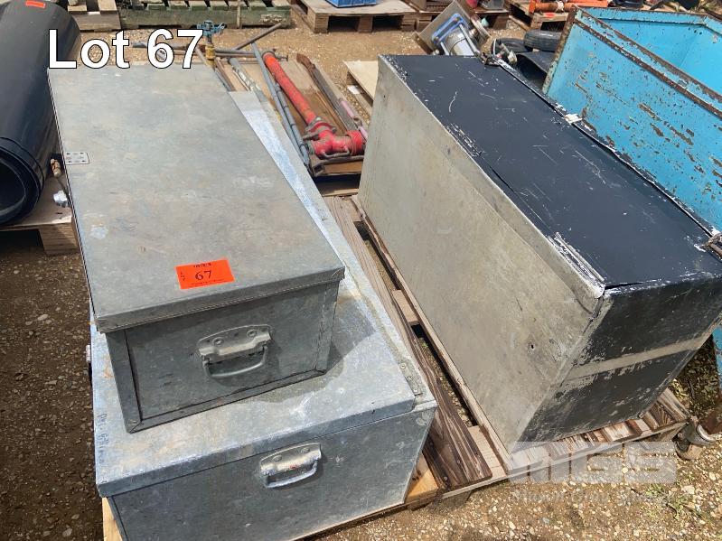 3 x TOOL BOXES, 1240 x 560 x 450mm, 770 x 340 x 280mm, 1100 x 560 x 420mm UNDER TRAY & MOBILE STEEL TUB