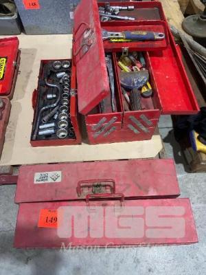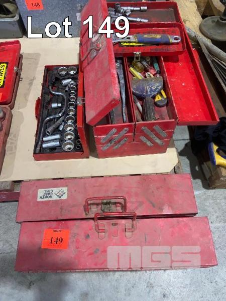 2 x CANTILEVER TOOL BOXES & 1/2" DRIVE SOCKET SET & ASSORTED TOOLS