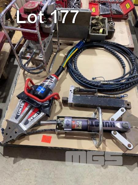 LUCAS HYDRAULIC SPREADER & HURST HYDRAULIC CUTTING HEAD WITH PETROL POWERED HYDRAULIC PUMP (NOWA POWDER)