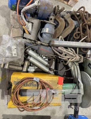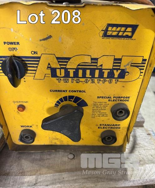 WIA ARC WELDER 240 VOLT TWIN SETTING , VARIABLE CHOKE. HITACHI 14" CUTOFF FRICTION SAW, ASSORTED PIPE FITTINGS . ANGLE GRINDER.ELECTRIC MOTOR G/BOX , HEAVY DUTY CLAMPS TIE DOWN AND ROPES.