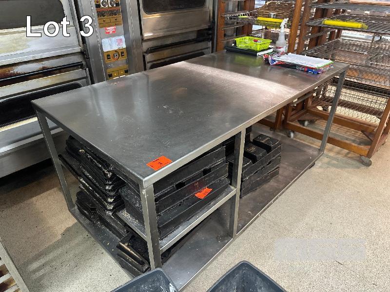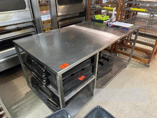 STAINLESS STEEL PREP BENCH 1800mm WITH SHELF, MOBILE