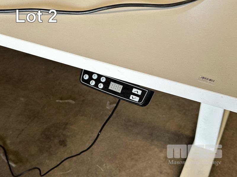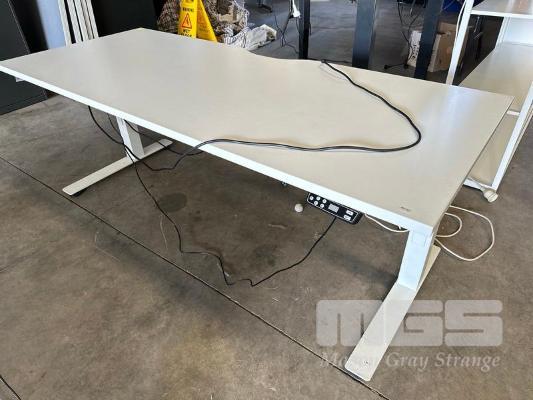 ELECTRIC HEIGHT ADJUSTABLE OFFICE DESK, WHITE LAMINATE TOP, WHITE STEEL FRAME, 180 x 75cm