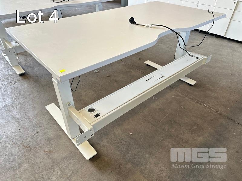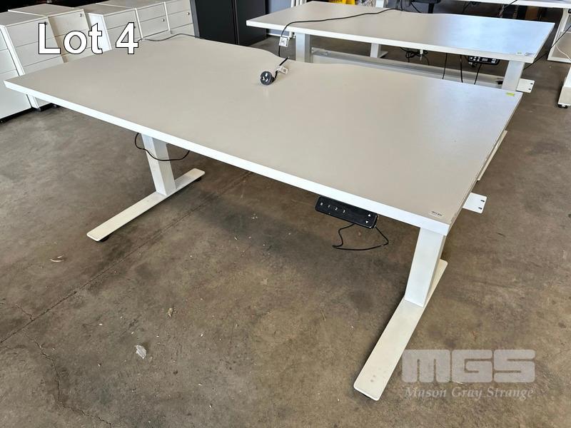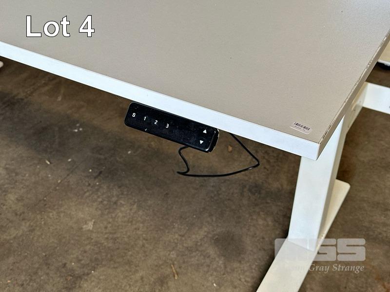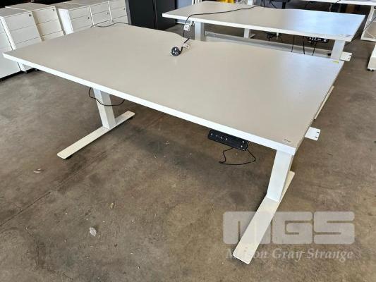 ELECTRIC HEIGHT ADJUSTABLE OFFICE DESK, WHITE LAMINATE TOP, WHITE STEEL FRAME, 150 x 75cm WITH CABLE TRAY