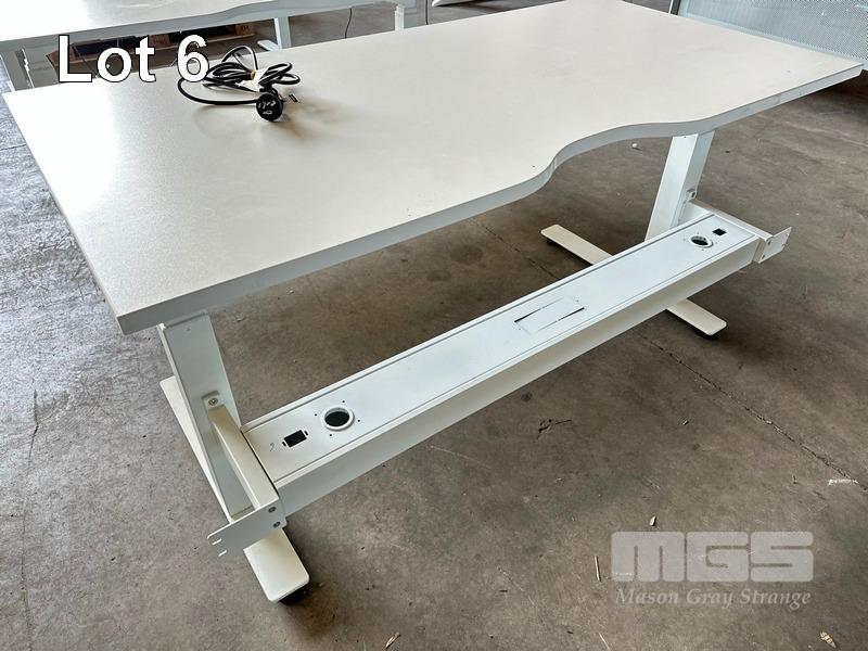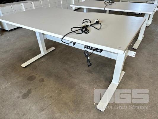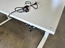 ELECTRIC HEIGHT ADJUSTABLE OFFICE DESK, WHITE LAMINATE TOP, WHITE STEEL FRAME, 150 x 75cm WITH CABLE TRAY (NOTE: SCRATCH ON TOP)