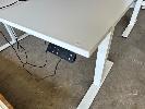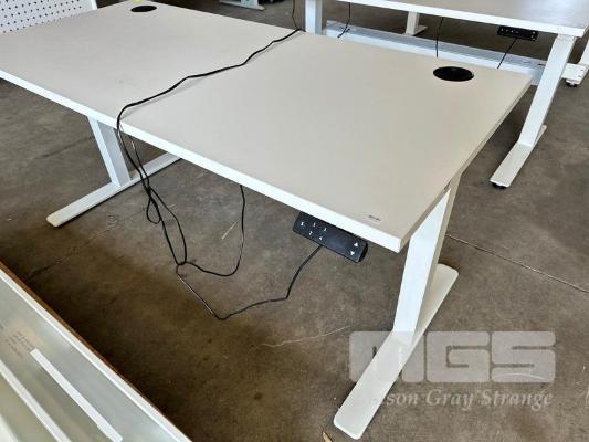 ELECTRIC HEIGHT ADJUSTABLE OFFICE DESK, WHITE LAMINATE TOP, WHITE STEEL FRAME, 150 x 70cm