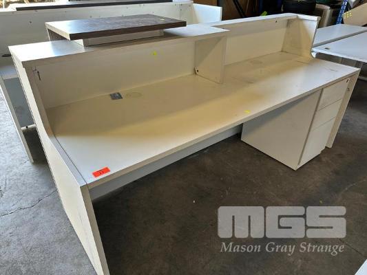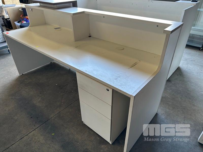 RECEPTION COUNTER, WHITE LAMINATE, 3 DRAWER UNIT, 220 x 72cm
