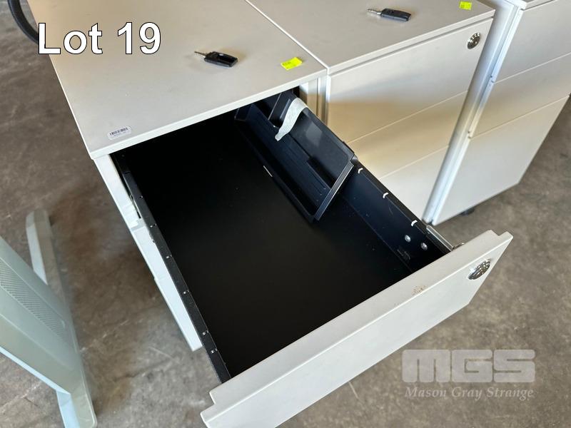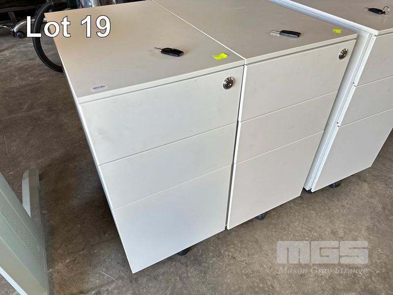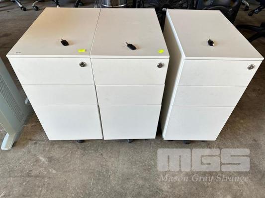 3 x UNDERDESK MOBILE PEDESTALS, 3 DRAWER, WHITE STEEL, LOCKABLE WITH KEYS