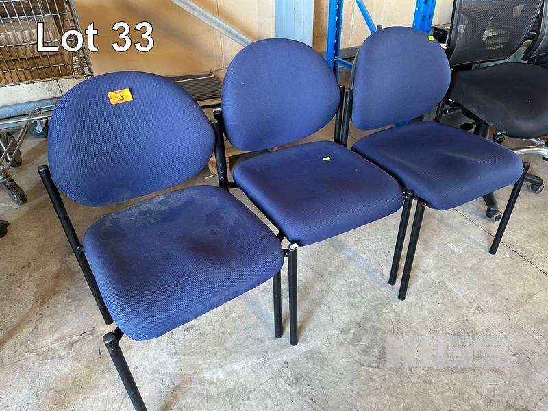 3 x VISTOR CHAIRS, BLUE FABRIC