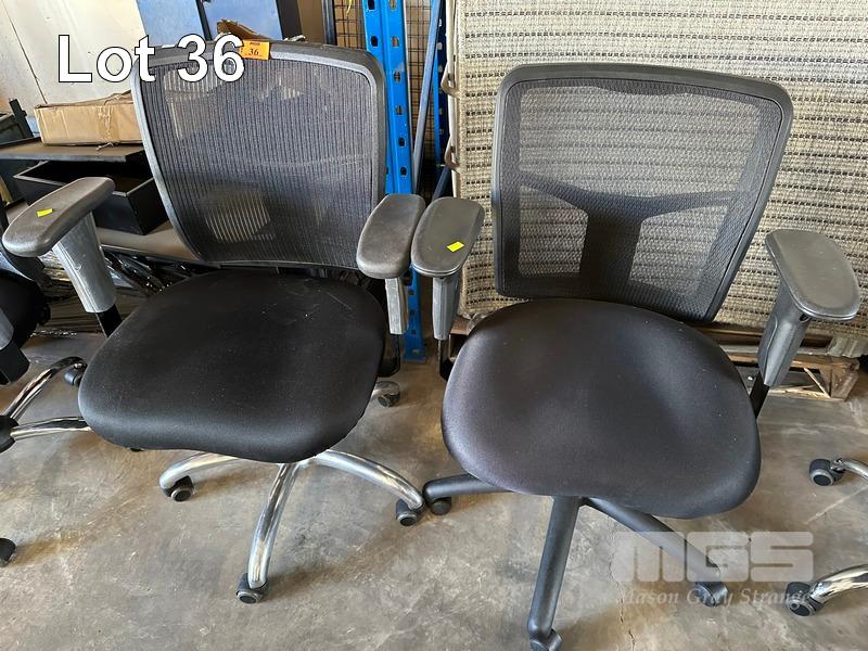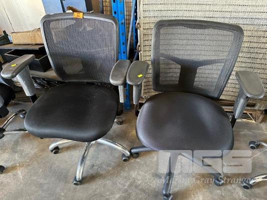 2 x OFFICE ARM CHAIRS, BLACK FABRIC, MESH BACK