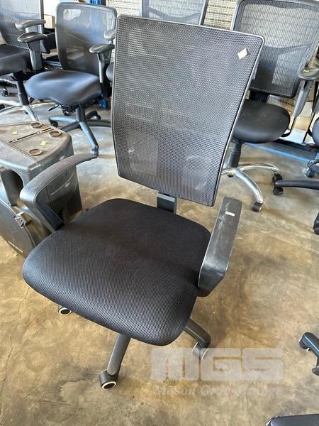 OFFICE ARM CHAIR, BLACK FABRIC, MESH BACK