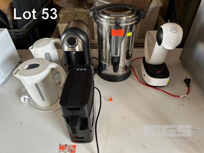 COFFEE POD MACHINE, NESCAFE DOLCE GUSTO COFFEE MACHINE, ANKO INSTANT HOT WATER DISPENSER, LIVING ESSENTIALS WATER URN, 2 x KETTLES