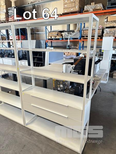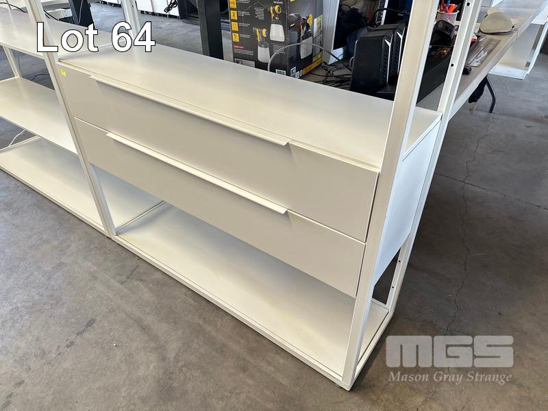 BOOKSHELF, WHITE STEEL, 192 x 118 x 35cm WITH DRAWER UNIT