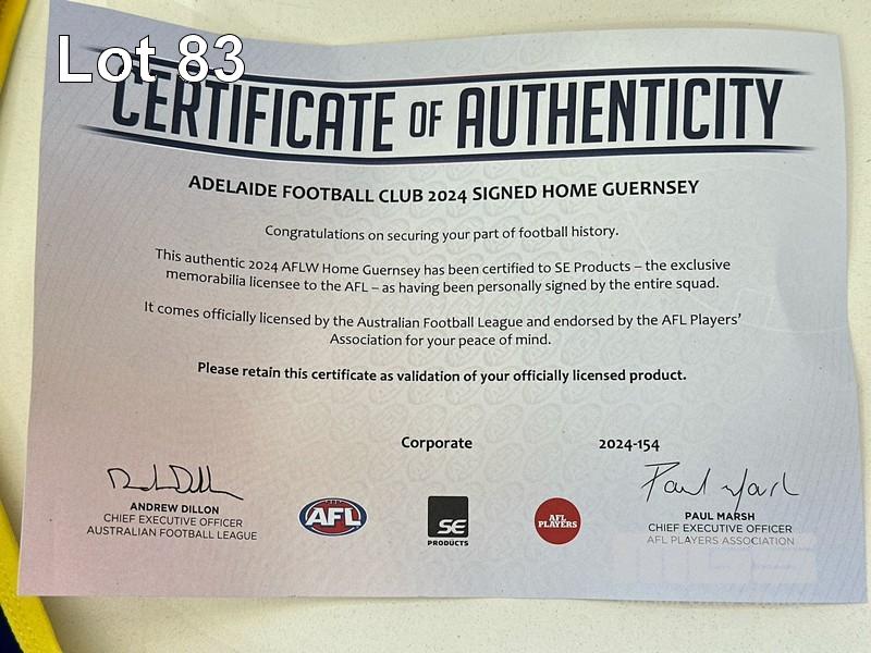 2024 AFLW ADELAIDE FOOTBALL CLUB SIGNED HOME GUERNSEY WITH COA