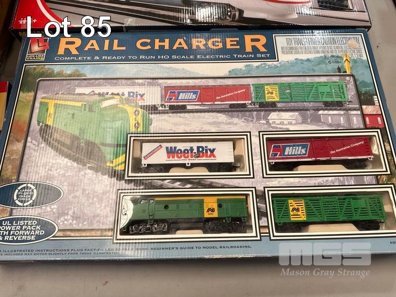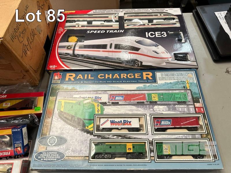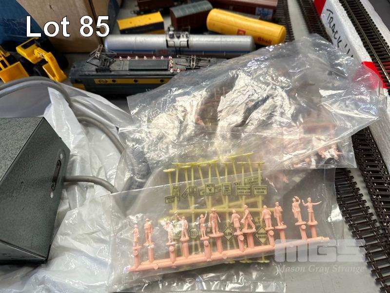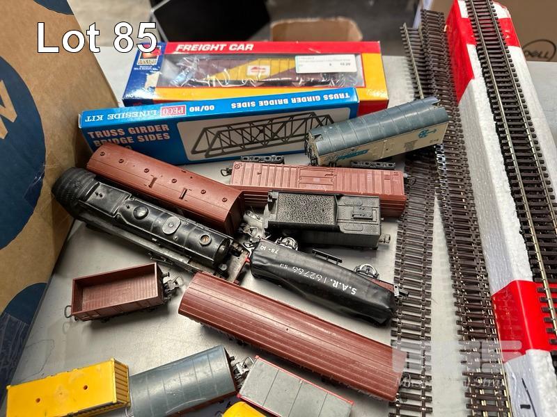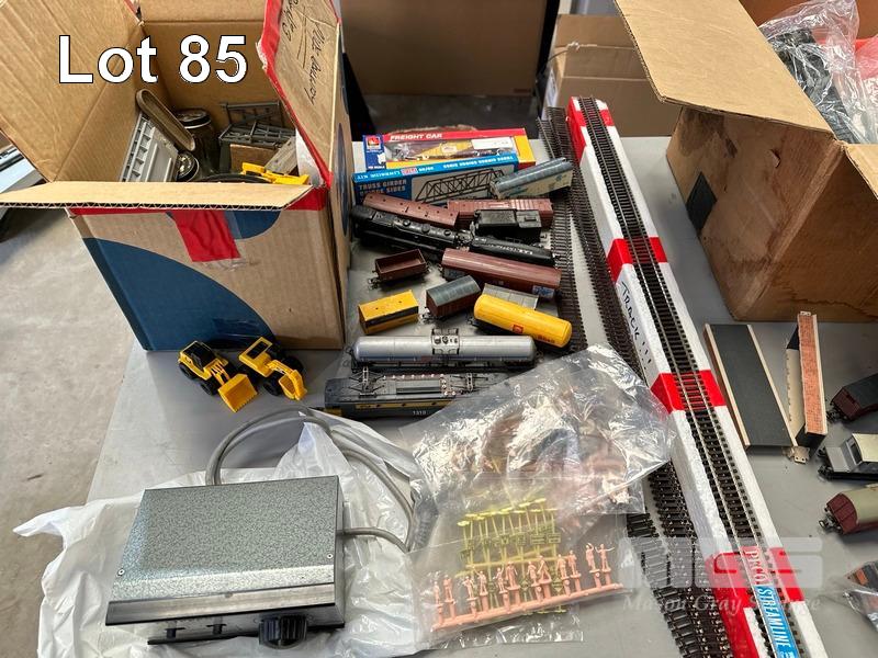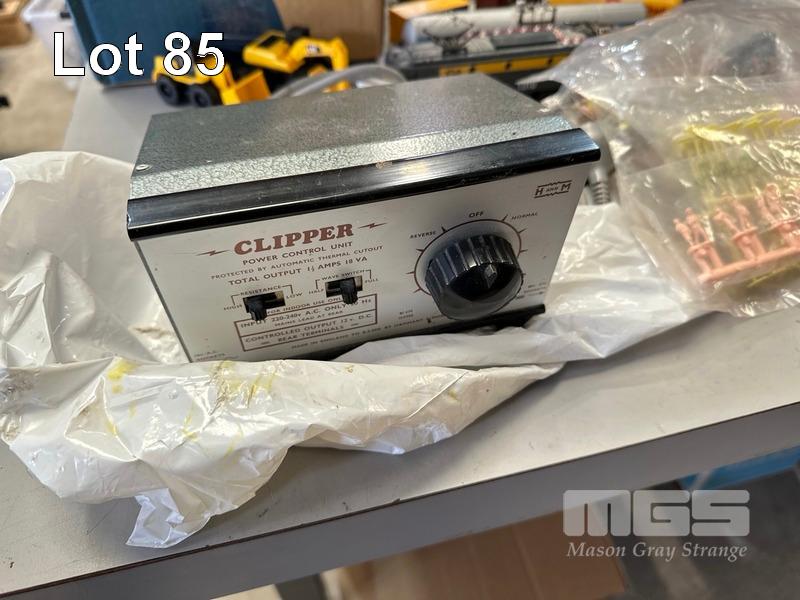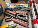 LARGE QTY ASST HO SCALE GAUGE TRAINS, TRACKS, CARRIAGES, CLIPPER POWER CONTROL UNIT ETC