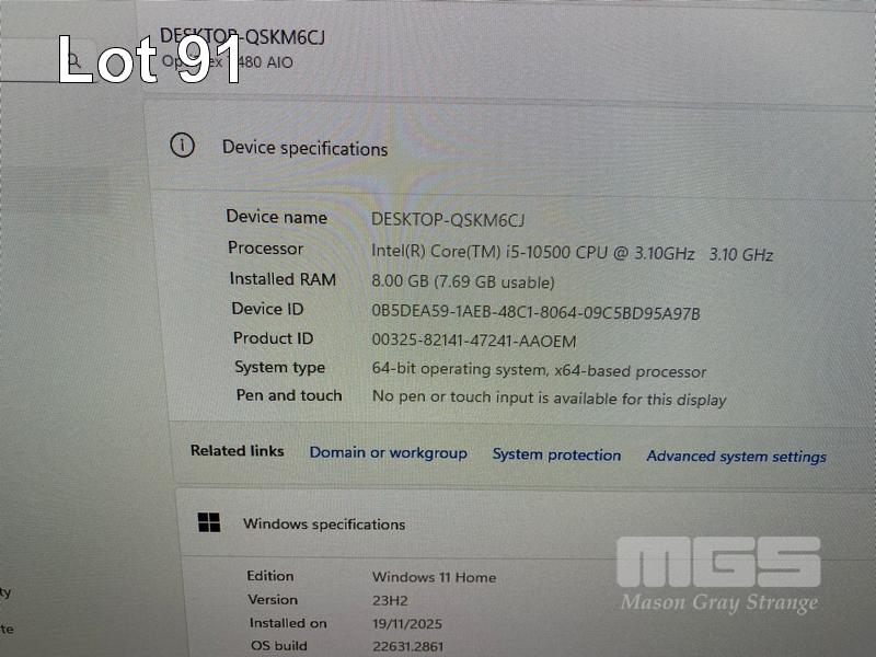 ALL-IN-ONE PC, DELL OPTIPLEX 7480, CORE i5 10500 (10TH GEN) @ 3.1GHz, 8GB DDR4 RAM, 512GB NVMe M.2 SSD, INBUILT 23.8" FHD WIDESCREEN (1920x1080), INTEL HD VIDEO, WEBCAM, 5 x USB, 1 x USB-C, Wi-Fi, BLUETOOTH, WINDOWS 11 HOME INSTALLED, KEYBOARD & MOUSE S/N:9CT54F3