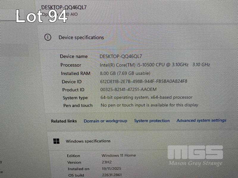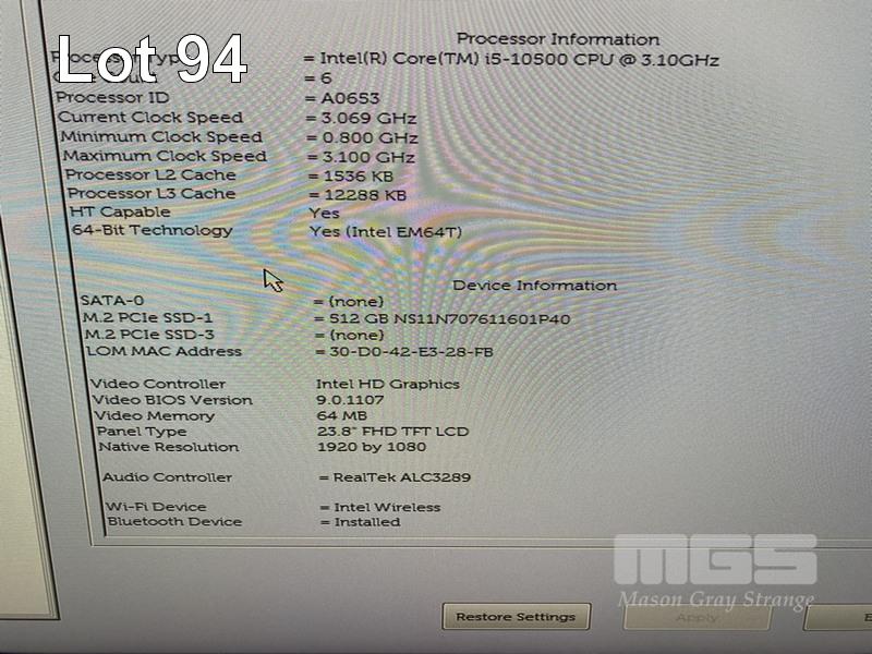 ALL-IN-ONE PC, DELL OPTIPLEX 7480, CORE i5 10500 (10TH GEN) @ 3.1GHz, 8GB DDR4 RAM, 512GB NVMe M.2 SSD, INBUILT 23.8" FHD WIDESCREEN (1920x1080), INTEL HD VIDEO, WEBCAM, 5 x USB, 1 x USB-C, Wi-Fi, BLUETOOTH, WINDOWS 11 HOME INSTALLED, KEYBOARD & MOUSE S/N:3DT54F3