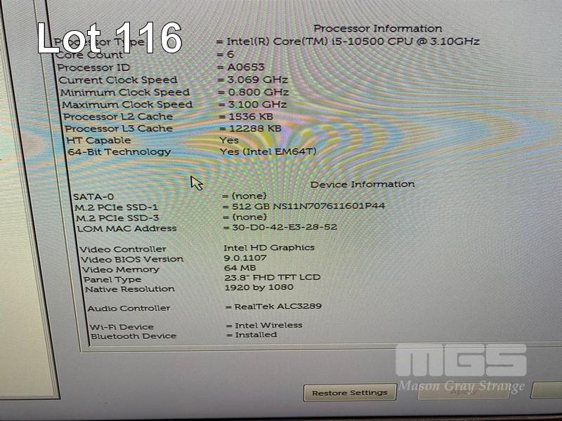 ALL-IN-ONE PC, DELL OPTIPLEX 7480, CORE i5 10500 (10TH GEN) @ 3.1GHz, 8GB DDR4 RAM, 512GB NVMe M.2 SSD, INBUILT 23.8" FHD WIDESCREEN (1920x1080), INTEL HD VIDEO, WEBCAM, 5 x USB, 1 x USB-C, Wi-Fi, BLUETOOTH, WINDOWS 11 HOME INSTALLED, KEYBOARD & MOUSE S/N:FCT54F3