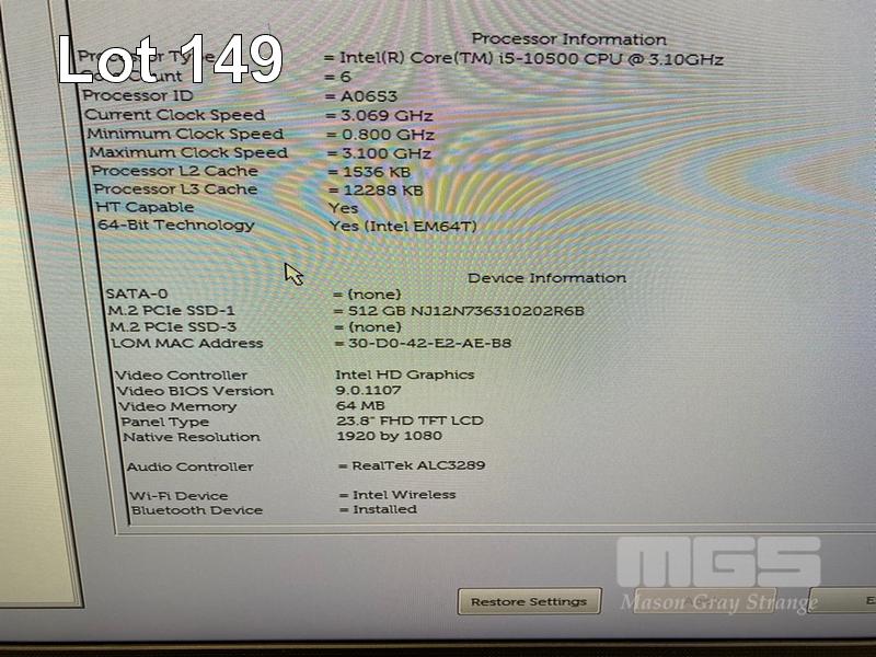 ALL-IN-ONE PC, DELL OPTIPLEX 7480, CORE i5 10500 (10TH GEN) @ 3.1GHz, 8GB DDR4 RAM, 512GB NVMe M.2 SSD, INBUILT 23.8" FHD WIDESCREEN (1920x1080), INTEL HD VIDEO, WEBCAM, 5 x USB, 1 x USB-C, Wi-Fi, BLUETOOTH, WINDOWS 11 HOME INSTALLED, KEYBOARD & MOUSE S/N:GBT54F3