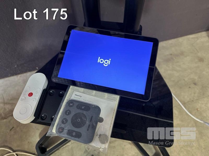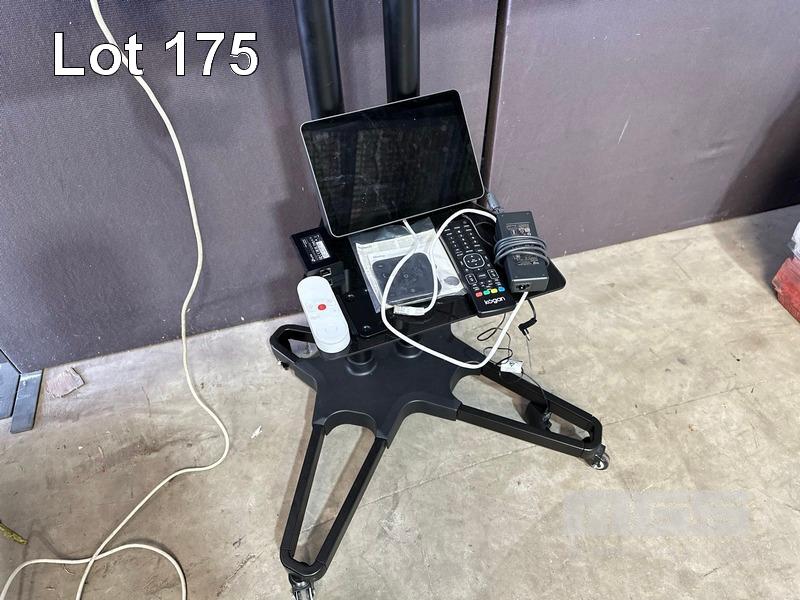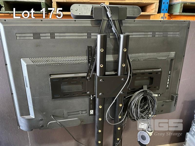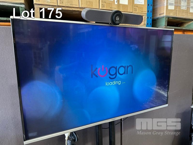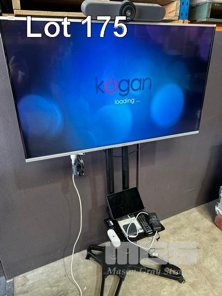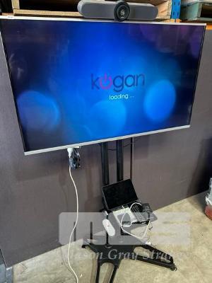 KOGAN 49" 4K AGORA SMART LED TV, KALED49SUHDZA WITH REMOTE ON MOBILE TV STAND WITH LOGITECH MEETUP CAMERA & SPEAKERPHONE UNIT, REMOTE, CABLES, EXPANSION MIC, LOGITECH TAP IP MEETING ROOM TOUCH CONTROLLER (VR0029)
