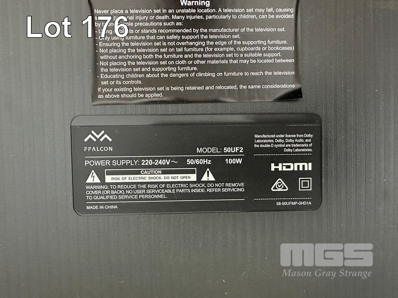 FFALCON 50" ULTRA HD SMART TV, MODEL 50UF2 (NO REMOTE) S/N:2112ALZ173517L01165