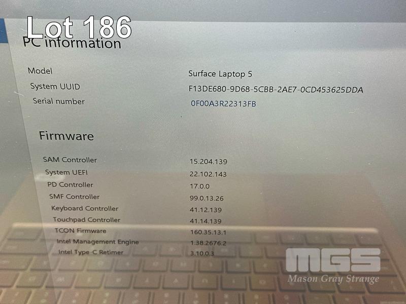 LAPTOP, MICROSOFT SURFACE 5 (SANDSTONE), MODEL 1951, CORE i5 1235U (12TH GEN) @ 2.5GHz, 16GB DDR5 RAM, 512GB NVMe M.2 SSD, 13.5" TOUCHSCREEN (2256x1504), INTEL IRIS Xe GRAPHICS, Wi-Fi, BLUETOOTH, WINDOWS 11 HOME INSTALLED & POWER SUPPLY S/N:0F00A3R22313FB