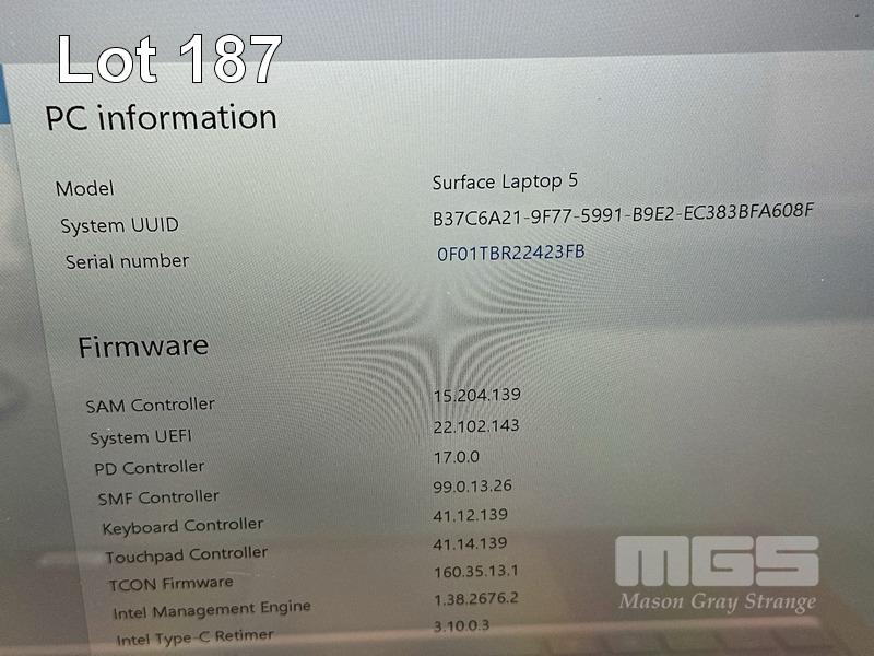 LAPTOP, MICROSOFT SURFACE 5 (SANDSTONE), MODEL 1951, CORE i5 1235U (12TH GEN) @ 2.5GHz, 16GB DDR5 RAM, 512GB NVMe M.2 SSD, 13.5" TOUCHSCREEN (2256x1504), INTEL IRIS Xe GRAPHICS, Wi-Fi, BLUETOOTH, WINDOWS 11 HOME INSTALLED & POWER SUPPLY S/N:0F01TBR22423FB