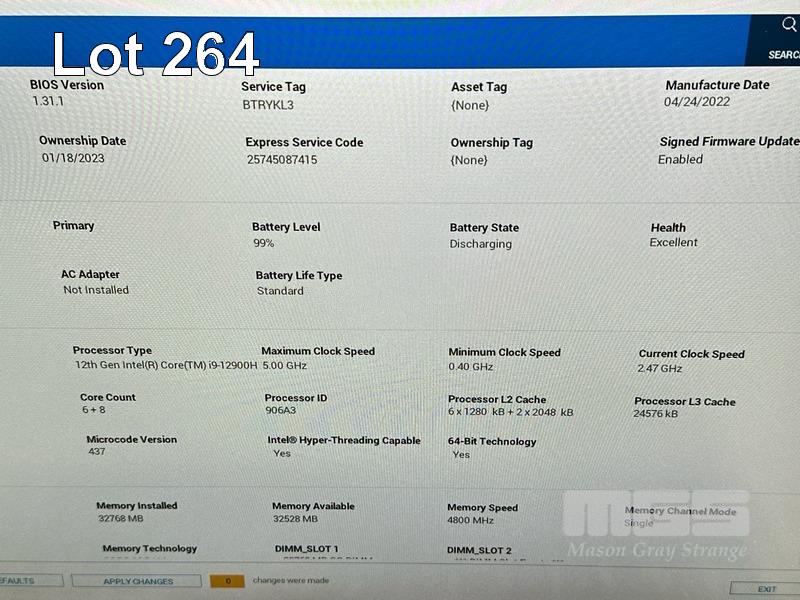 LAPTOP, DELL PRECISION 3571, CORE i9 12900H (12TH GEN) @ 2.5GHz, 32GB DDR5 RAM, 512GB NVMe M.2 SSD, 15.6" WIDESCREEN (1920x1080), 4GB NVIDIA T600 VIDEO, Wi-Fi, BLUETOOTH, WINDOWS 11 PRO INSTALLED & USB-C POWER SUPPLY S/N:BTRYKL3