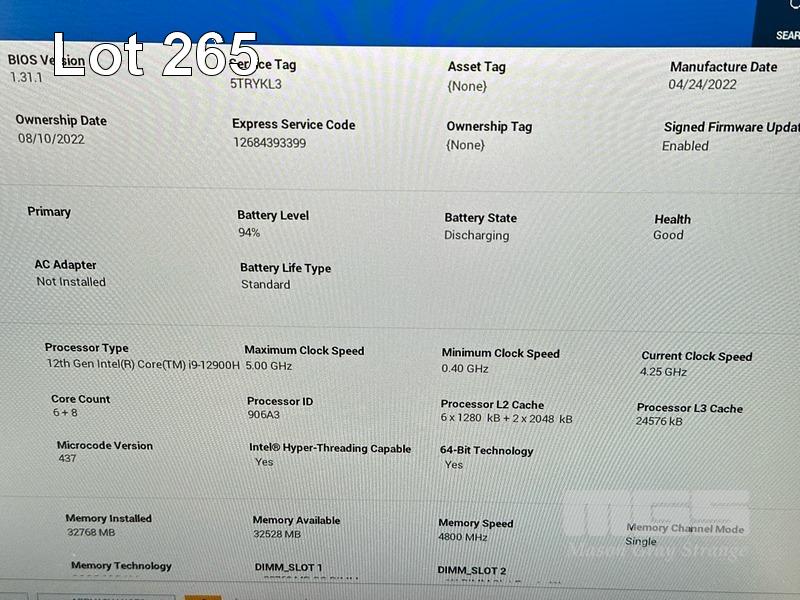 LAPTOP, DELL PRECISION 3571, CORE i9 12900H (12TH GEN) @ 2.5GHz, 32GB DDR5 RAM, 512GB NVMe M.2 SSD, 15.6" WIDESCREEN (1920x1080), 4GB NVIDIA T600 VIDEO, Wi-Fi, BLUETOOTH, WINDOWS 11 PRO INSTALLED & USB-C POWER SUPPLY (NOTE: MINOR CASING PEELING) S/N:5TRYKL3