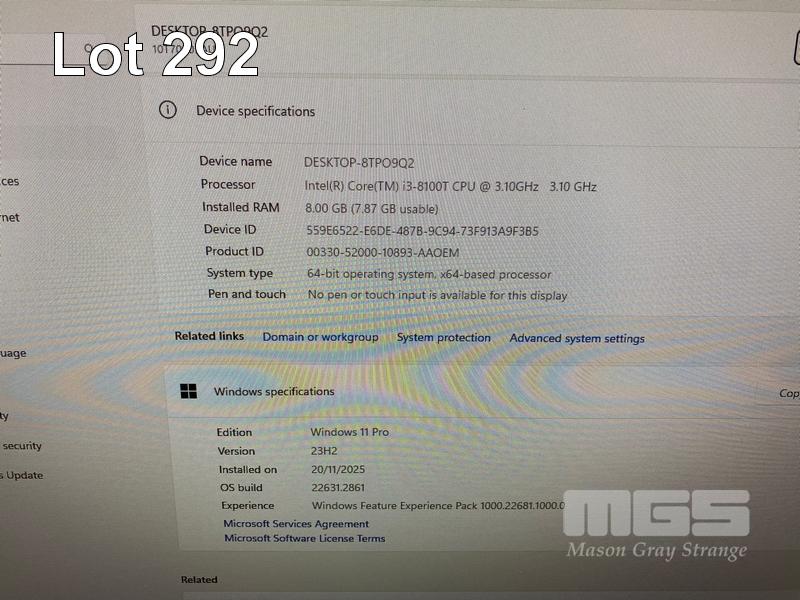 TINY-IN-ONE PC, LENOVO THINKCENTRE M720q, TYPE 10T7, CORE i3 8100T (8TH GEN) @ 3.1GHz, 8GB DDR4 RAM, 256GB NVMe M.2 SSD, LENOVO TIO24Gen3 23.8" LED-BL LCD WIDESCREEN, WEBCAM, Wi-Fi, BLUETOOTH, WINDOWS 11 PRO INSTALLED, CORDLESS KEYBOARD, MOUSE & POWER SUPPLY S/N:PC155FX9