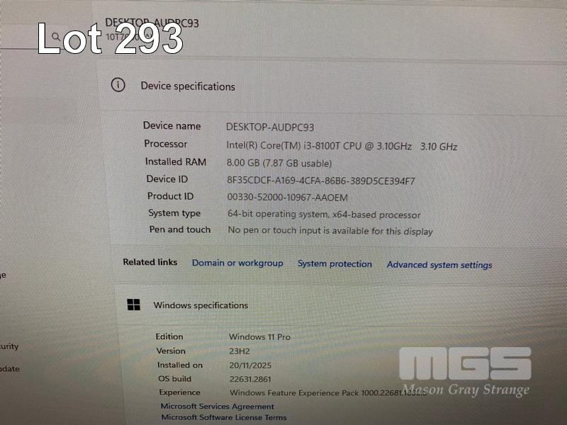 TINY-IN-ONE PC, LENOVO THINKCENTRE M720q, TYPE 10T7, CORE i3 8100T (8TH GEN) @ 3.1GHz, 8GB DDR4 RAM, 256GB NVMe M.2 SSD, LENOVO TIO24Gen3 23.8" LED-BL LCD WIDESCREEN, WEBCAM, Wi-Fi, BLUETOOTH, WINDOWS 11 PRO INSTALLED, CORDLESS KEYBOARD, MOUSE & POWER SUPPLY S/N:PC155FGF