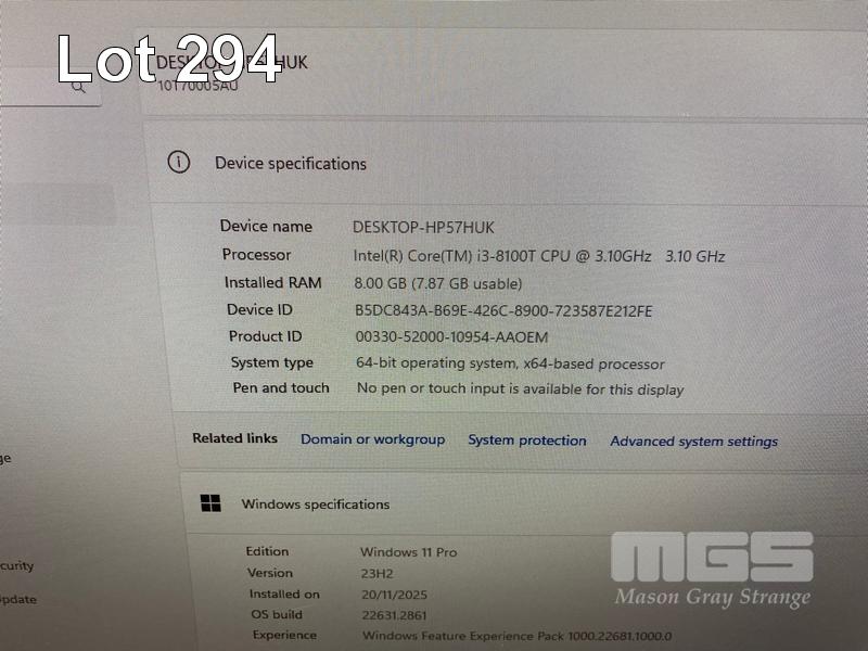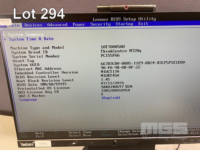 TINY-IN-ONE PC, LENOVO THINKCENTRE M720q, TYPE 10T7, CORE i3 8100T (8TH GEN) @ 3.1GHz, 8GB DDR4 RAM, 256GB NVMe M.2 SSD, LENOVO TIO24Gen3 23.8" LED-BL LCD WIDESCREEN, WEBCAM, Wi-Fi, BLUETOOTH, WINDOWS 11 PRO INSTALLED, CORDLESS KEYBOARD, MOUSE & POWER SUPPLY S/N:PC155FG6