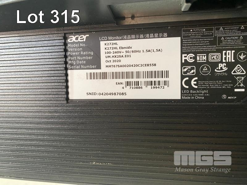 MONITOR, ACER K272HL27" FHD LCD WIDESCREEN, HDMI, DISPLAYPORT, VGA, DVI (WITH CABLES) S/N:04204987085