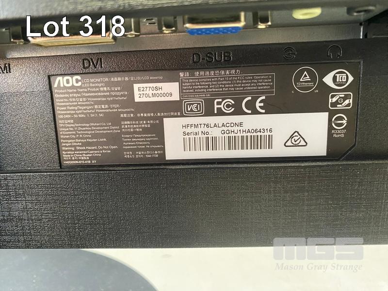 MONITOR, AOC E2770SH 27" FHD LCD WIDESCREEN, HDMI, VGA, DVI (WITH CABLES) S/N:GGHJ1HA064316